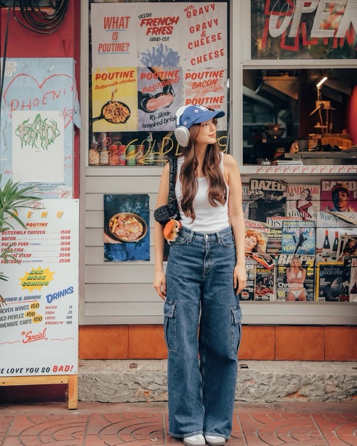 For example, pair an affordable baggy t-shirt and thrifted cargo pants with a Nike cap or a cool pair of Converse-style sneakers to balance your outfit.
